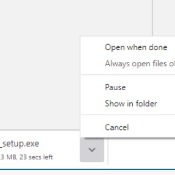 A downloaded file named "xena_setup.exe" will appear in the lower left corner of the browser. When the download is complete, click on the arrow next to the file name and select "Open when done" from the menu.
